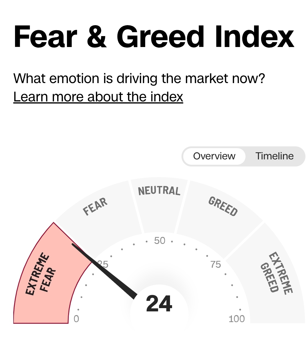시장 심리는 급격히 위험 회피로 전환되었고, CNN의 공포·탐욕 지수는 다시 "극단적 공포" 영역으로 떨어져 4월 초 관세로 인한 매도세를 반영했다.